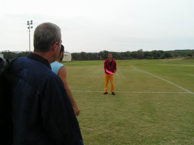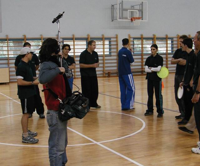 יאללה. לעניינים. למבחן המעשי כל אחד נדרש, בין השאר, להדריך נושא קצר. רפי לימד אותנו תפיסה בקפיצה, תומר התעסק דווקא ב- DDC, עדי דיברה על דיסקגולף ויקיר הסביר איך לבצע AIR BOUNCE מהכתף. כל הזמן הזה דורי ריחף מסביב כמו לווין ריגול כתום-כחול, רושם הערות בקלסר שלו ומדי פעם רומז למישהו אחר לפברק הפרעה – כדי שזה יהיה כמו שיעור אמיתי (והתפקיד של יקיר ואסף היה להפריע כמו שרק תלמידים יכולים ללמד אותם). |