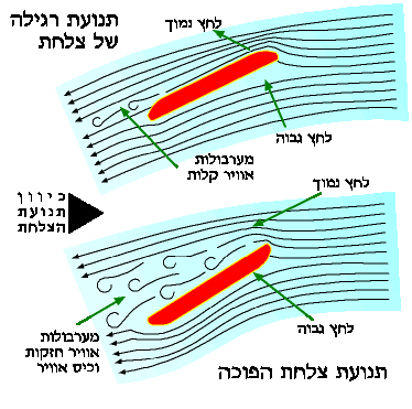 | מעוף רגיל של צלחת מפצל את האוויר המגיע לקצה הקידמי של הצלחת: חצי עובר